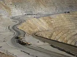 During his lifetime, Smithson created several proposals for projects that were unrealized, either due to their visionary nature, lack of support or their impracticality. Between 1966 and 1967 he produced Proposals for the Dallas-Fort Worth Regional Airport as concepts for "aerial art", monumental-scaled earthworks to be seen by air travelers.[8] In 1970 Smithson created a series of drawings for Floating Island: To Travel around Manhattan Island. The proposed project consisted of a barge containing broken concrete or glass to be pulled by a tugboat around Manhattan. Other versions of the project were of a barge filled with earth and planted with trees and other vegetation.[8] In 1971 he drew Towards the Development of a "Cinema Cavern", a design for a theater to be built inside a cave with spelunkers as the intended audience.[10] In 1973 he designed the Bingham Canyon Reclamation Project, a visionary proposal for the three-mile-wide (4.8 km) copper pit mine in Utah owned by the Kennecott Copper Corporation. The mining company responded negatively to the proposal and it was never built.[8]