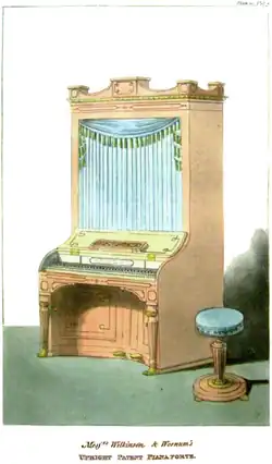 - ^ "Messrs. Wilkinson & Wornum's Upright Patent Pianaforte"[sic] Plate 10. Fashionable Furniture The Repository of Arts February 1812 vol.7 no.38 p. 111