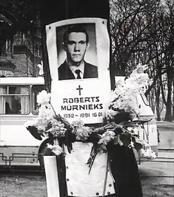 Roberts Mūrnieks (4 July 1952 – 16 January 1991) was the first person killed by Soviet OMON during the Barricades in 1991 in Latvia. His funeral became a public protest against Soviet occupation and aggression in Latvia.