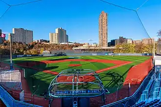 Hal Robertson Field at Phillip Satow Stadium is a baseball venue in New York, New York, United States. It is home to the Columbia Lions baseball team of the NCAA Division I Ivy League. The facility is named for two Columbia baseball alumni– Hal Robertson (class of 1981) and Phillip Satow (class of 1963). In 2007, a FieldTurf surface was installed, allowing for more use of the field during the offseason. In 2010, chairback seats were added, and the dugouts, press box, and scoreboard were renovated.[1][2][3]