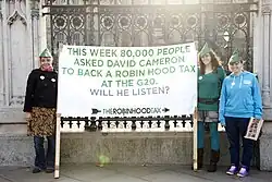 - ^ a b Kylie MacLellan and Ron Askew (10 February 2010). "'Robin Hood' tax campaign launched". Reuters. Archived from the original on 12 February 2010. Retrieved 19 March 2010.