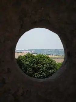 Along with the South Tower and the curtain wall connecting them, it was the external front of the fortress. It had two fire levels, the first one on the gun emplacement at the top, which was protected by merlons and embrasures, and the second one at ground level in the casemate with a reconstructed barrel vaulted ceiling and three embrasures.