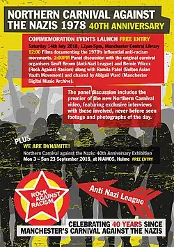 - ^ "40th Anniversary of Northern Carnival Against the Nazis Sees Gig and Event". Salford Star. Retrieved 10 March 2018.