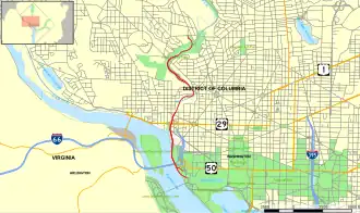 ![]() Map of the District of Columbia with Rock Creek Parkway highlighted in red | |