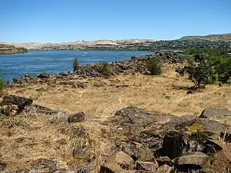 The Rock Fort Campsite is a natural fortification on the south shore of the Columbia River in The Dalles, Oregon, United States. The Lewis and Clark Expedition camped at this defensible spot for three nights in late October 1805, just after it passed Celilo Falls on its descent to the Pacific Ocean, and again for one night on their return journey. It was here that the expedition first made significant contact and commerce with the Chinookan-speaking peoples of the lower Columbia.[2][3]