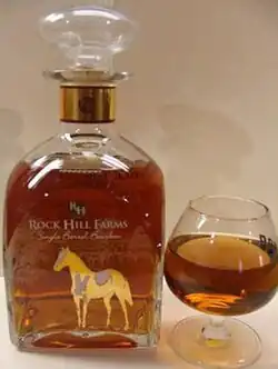 Rock Hill Farms is a single barrel bourbon whiskey produced in Frankfort, Kentucky, by the Sazerac Company. The brand is sold as a straight bourbon. It comes from Buffalo Trace Distillery's mash bill #2.[1] Similar Buffalo Trace Distillery bourbons that come from mash bill #2 are Elmer T. Lee, Ancient Age, and Blanton's.[2] Rock Hill Farms is sold in glass in 750ml bottles.
