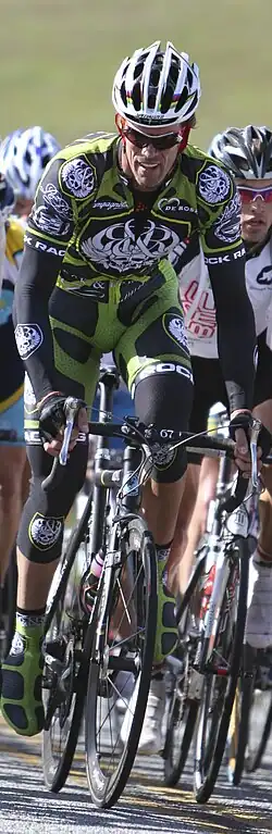 Major victories for 2008 included a team sweep in the prologue of June's Vuelta a Colombia,[14] on the way to a Stage 7 victory by Víctor Hugo Peña,[15] and Stage 9 victory by Óscar Sevilla,[16] who also won Commerce Bank Reading Classic earlier that month.[17] Of note, Sevilla also became the first non-Colombian in 48 years to win that nation's nine-day RCN Classic in October.[18] Tyler Hamilton won both the Tour of Qinghai Lake in July,[19] and the USPRO Road Race Championship in September.[20] Rahsaan Bahati's USPRO Criterium Championship victory gave the team both the Road Race and Criterium National Champions for the United States.[21] Bahati also won other major events such as Athens Twilight Criterium, Chevron Manhattan Beach Grand Prix,[22] the Millikan Memorial Crit, as well as two stage wins during Wisconsin's Superweek on the way to becoming the second best sprinter in that series. During Santiago Botero's final season abroad he bookended his long career, by winning Stage 1 and placing 1st on the Final GC of Redlands Bicycle Classic. In a season of "firsts" for Botero, he also won the opening day of both Cascade Cycling Classic,[23] and his native Vuelta a Colombia, which he won overall in 2007. Notably, he also finished 7th in the Elite Men's Road Race at the Beijing Summer Olympics. Fred Rodriguez had a 3rd place, podium finish at the Philadelphia International Championship.[24]