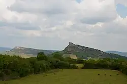 The Rock of Solutré (French: Roche de Solutré) is a limestone escarpment 8 km (5.0 mi) west of Mâcon, France, overlooking the commune of Solutré-Pouilly. It is an iconic site in the department of Saône-et-Loire, in Bourgogne-Franche-Comté.