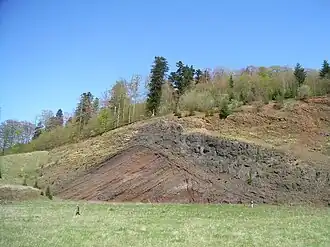 The Rockeskyller Kopf near Rockeskyll in the county of Vulkaneifel in the German state of Rhineland-Palatinate is a hill, 554.6 m above sea level (NHN),[1] in the Eifel mountains. It is an extinct volcano complex from the Quaternary period, around 360,000 years old and is designated as a natural monument (ND-7233-420).