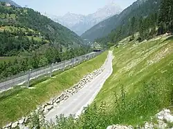 Rockfall protection embankments belong to the family of passive rockfall protection structures, comprising flexible barriers or galleries in particular.[2] They are intended for rockfalls with kinetic energies up to tens of megajoules and are preferred over flexible barriers when the design impact is higher than 5000 kJ.[3] Their declared advantages over other passive rockfall mitigation structures are low maintenance costs and reduced visual impact. Nevertheless, they are not appropriate on steep slopes and their construction generally requires extensive space and accessibility for heavy vehicles.