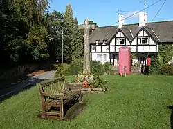 Several buildings in and around the village were constructed as part of the Rolls estate. One of the entrance lodges to the family home at The Hendre, 2 miles (3.2 km) to the west, is sited immediately north of the village. Almshouses, provided in 1906 by Lord Llangattock for retired estate workers, are located beside the main road south of the village. They were designed by Aston Webb and built in local Old Red Sandstone with half-timbering.[7] To the north of the village, Pentwyn is a house designed and occupied from 1837 by the Monmouth architect George Vaughan Maddox, and later extended as a parsonage.[7]