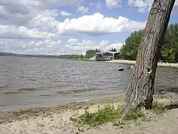 A dam was proposed in 1907 and approved in December of the same year by the Government of Canada. It was built on the Little Saskatchewan River near the town. After several delays, the dam was completed in 1912, creating Minnedosa Lake. Water first flowed over the spillway on April 10, 1912. Minnedosa was the second community in the Province of Manitoba to generate its own hydroelectric power.[3] An earlier project in 1900 was also on the Minnedosa River and supplied power to the town of Brandon, Manitoba. Initially privately owned, the generation plant was taken over by the Manitoba Power Commission in 1920 and replaced by a diesel generation plant and by 1930, power from the provincial grid. The lake was used as a source of water for the town, for recreation, and for supplying the engines of the Canadian Pacific Railway.[3] On May 4, 1948, the spillway of the dam failed due to erosion of structure, and the resulting flood damaged many homes and businesses in the town. The spillway was not repaired until 1950 by the Prairie Farm Rehabilitation Administration.[5]