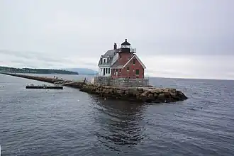 The Rockland Breakwater is a breakwater sheltering the harbor of Rockland, Maine. More than 4,000 feet (1,200 m) long, it was built in the 1890s by the United States Army Corps of Engineers out of locally quarried granite to improve the harbor's ability to shelter ships from coastal storms. It was listed on the National Register of Historic Places in 2003.[1]