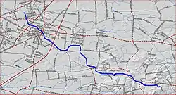 It continues flowing west alongside Etra Road and crosses the New Jersey Turnpike. It then flows into Peddie Lake in the heart of Hightstown. It crosses Route 33 and flows past the Town Center Plaza and Shopping Center before crossing Route 130 and the Hightstown Bypass. It then flows alongside the East Windsor Open Space Acquisition before draining into the Millstone River at 40°17′18″N 74°32′23″W / 40.28833°N 74.53972°W.[2]