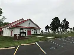 Rocky Fork Township was established in 1821.[3] Settled mainly by settlers from the upland south (Kentucky, Virginia, and Tennessee), the township was named after the Rocky Fork branch of the Roche Perche Creek, which was in turn named after a large rock shelf at the confluence of the two streams. The original route of the Boone's Lick Road entered Boone County from the east here. The Battle of Mount Zion Church occurred in this township during the American Civil War.