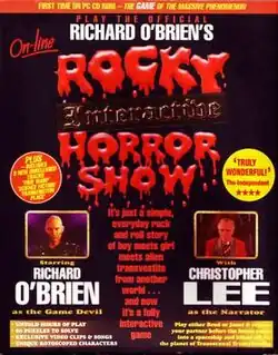 Rocky Interactive Horror Show for PC would be set to be released during the Christmas season of 1998,[24] before being eventually published by On-Line in Europe on March 1, 1999, and later in North America in November 2000.[1][2] A PlayStation conversion was also announced and planned to be published alongside the Windows version around the same time, but it was never released for unknown reasons.[6][16] The game was narrated by Christopher Lee and versions of the title also came bundled with a walkthrough of how to complete it.[17][25] The game's CD-ROM itself also doubles as a music CD.[5] In 2004, a non-playable demo of Rocky Interactive Horror Show on Jaguar CD was released by the defunct Jaguar Sector II website under a CD compilation titled Jaguar Extremist Pack #2.[15][26][27][28]