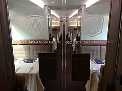 This service option is only offered on Rocky Mountaineer's Rockies to the Red Rocks route (Denver to Moab). SilverLeaf Plus includes all the benefits of their SilverLeaf Service, plus exclusive access to their newly renovated lounge car. Featuring signature cocktails, the lounge car offers additional space indoors as well as a small outdoor viewing area. This service level offers an elevated dining experience and premium alcoholic beverages.[18]