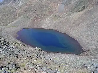 The Estanyol Occidental de Canalbona or Estany de Canalbona is a small glacial lake located between the Pic de Canalbona and the "Rodó de Canalbona", at the base of the "Collet Fals" in the Montcalm Massif near the "Pica d'Estats". The lake drains towards the Catalan side. The ice usually is totally melted at the end of the summer.