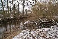 Like the other rivers in the glacial valley, the Rodenbek flows in an east–west direction to the Alster, a tributary of the Elbe.