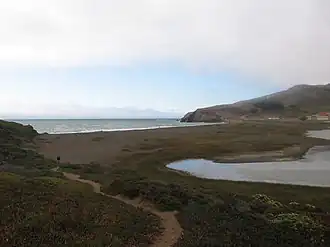 ![]() Rodeo Beach with buildings of Fort Cronkhite visible | |