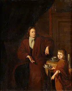 He was born in Zwolle as the son of Andries Koets and is known as a portrait painter and the teacher of the miniature painter Herman Wolters, the husband of Henriëtta van Pee.[1] According to his biographer Johan van Gool, he had been a pupil of Gerard ter Borch and painted upwards of 5000 portraits of various gentry in Friesland and Overijssel, including portraits of the family of Hendrik Casimir.[2] Though sometimes still life paintings are attributed to him, most of these are by an earlier Roelof Koets, who could possibly have been his descendant. He died in Zwolle.