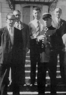 ![]() Roger Belbéoch, third from left, with his colleagues at the Nogent police commissariat, 8 May 1945 | |