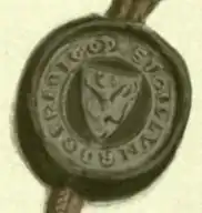 Bigod had done good service for the King in the past. In August 1282, for instance, contemporary accounts record Bigod "going to Wales on the king's service." During his absence in Ireland, Bigod had sent letters nominating Reginald Lyvet and William Cadel to act as his attorneys in England for the year.[5] Reginald Lyvet was probably the son of Gilbert de Lyvet, who was Lord Mayor of Dublin for several terms in the early thirteenth century, and was a partisan of William Marshal, 1st Earl of Pembroke. Some scholars have wondered how English barons like Bigod and the Clares kept such a tight hold on their Irish lands during a time when the English grip on Ireland was starting to weaken. Apparently part of the secret was the delegation of authority, as in this case by Bigod to his lieutenants Lyvet and Cadel.[6]