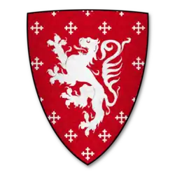 ![]() Arms of Roger la Warr: Gules, crusily and a lion rampant argent. | |