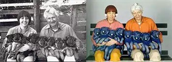 Art Rogers, a professional photographer, took a black-and-white photo of a man and a woman with their arms full of puppies. The photograph was simply entitled, Puppies, and was used on greeting cards and other generic merchandise.