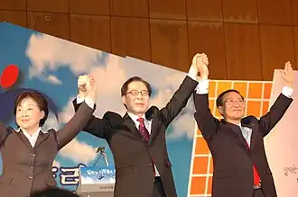 - ^ Steinberg, David I.; Shin, Myung (2006). "Tensions in South Korean Political Parties in Transition: From Entourage to Ideology?". Asian Survey. 46 (4): 531. doi:10.1525/as.2006.46.4.517. JSTOR 10.1525/as.2006.46.4.517.
