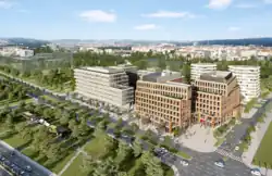 Rohan City is the name of a planned neighborhood on the former Rohan Island located at the borders of the Prague neighborhoods of Karlín, Invalidovna, and Libeň. The project will be an extensive revitalization effort including apartment buildings and administrative complexes, which will also contain spaces for public facilities and services.[1] The planned location also includes space for a school building. The element uniting the project will be a kilometer-long promenade on the right bank of the Vltava planned along the route of the current A2 riverside bicycle path. This promenade will create a fluid transition between urban structure and the green recreational area of an extensive park that will be built along the bank of the Vltava River.[1]