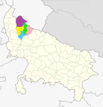 Moradabad division (Hindi pronunciation: [mʊɾaːd̪aːbaːd̪]) is one of the 18 administrative geographical units (i.e. division) of the northern Indian state of Uttar Pradesh. Moradabad city is the administrative headquarters of this division. It forms a part of the Rohilkhand region. Currently (As of 2005), the division consists of 5 districts:-