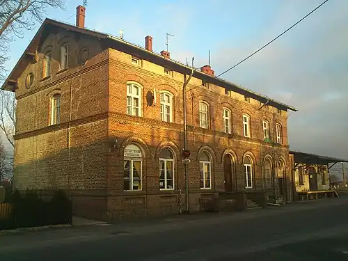 Rokietnica railway station is a railway station serving the village of Rokietnica, in the Greater Poland Voivodeship, Poland. The station is located on the Poznań–Szczecin railway and the now closed Rokietnica–Skwierzyna railway. The train services are operated by Przewozy Regionalne.