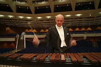 At the age of twenty, Haerdtner started his musical education at the Badisches Konservatorium in Karlsruhe. With the beginning of his studies at the Robert-Schumann-Hochschule Düsseldorf (1985–92), he concentrated on independent-minded interpretations of demanding concert literature (e.g. the Concerto pour Marimba, Vibraphone et Orchestre, op.278 by Darius Milhaud) and on the arrangement of western cultural sphere’s music for his instruments. Up to now he doesn’t commit himself neither to single epochs in concert literature nor to specific stylistic ways of play. Besides his work as an orchestra musician, he has established himself in the concert business as a soloist for the mallet instruments marimba, vibraphone and xylophone since the 1980s. Meanwhile, his repertoire with hundreds of works, especially in the field of the mallet arrangements, is considered as worldwide unique [1].