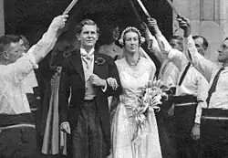 In this period, he was also much concerned with English folk dance, and convinced Morris dance revivalist Mary Neal that Morris was an essentially masculine form.[9][10] He founded the Travelling Morrice in 1924, with Arthur Heffer, having taken a team of English dancers to Germany in 1922, and in 1923 met a few of the surviving dancers while walking in the Cotswolds with the poet Christopher Scaife.[11][12][13] Gardiner was not, however, a founder of the Morris Ring, set up in 1934.
