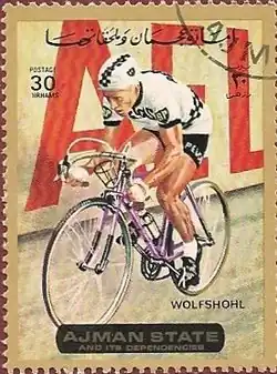 In the 1965 Vuelta a España while riding in the Mercier cycling team of defending champion Raymond Poulidor, Wolfshohl took the leaders jersey off his team leader on the eighth stage. Wolfshohl showed himself to be the strongest in the race and kept the leader's jersey to the finish where he won with six minutes advantage over Poulidor.[6] As a road racer, Wolfshohl also won two stages in the Tour de France, the West German road race championships and Paris–Nice. His win in Paris–Nice was by just three seconds over Ferdinand Bracke.[7]