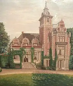 Jewish merchant Moritz G. Melchior and his wife Dorothea acquired it as a summer residence in the 1850s. In 1869, they had it completely rebuilt in the Dutch Renaissance or Christian IV style of Rosenborg Castle with a tower and rounded Dutch gables.[3]