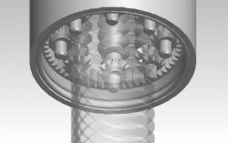 Now that the core patents have expired, an open source roller screw was developed in OpenSCAD to be 3-D printed for food processing applications.[5] The planetary roller screw can be fabricated in dishwasher-safe polyethylene terephthalate glycol (PETG) on any desktop 3-D printer. The maximum force is more than doubled for the roller screw actuator using the same materials when compared to a direct screw press, making them adequate for some food processing techniques.