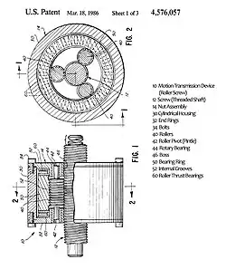 - ^ US 4576057, Saari, Oliver, "Anti-friction nut/screw drive", published 1986-03-18, assigned to Illinois Tool Works Inc.