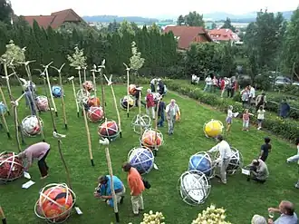 Rolling Stars and Planets is an Austrian visual art project of exhibitions and performances with sphere objects. The project mastered by Elisabeth Ledersberger-Lehoczky is joined by about 25 artists who come mostly from Austria, but also from Hungary and Germany.
