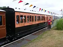 | LCDR | 51 | 4-wheeled Brake Second | Built in 1889, basically identical to 114. In 2009 the carriage gained public support in an appeal on national television for funds toward overhaul, including provision for disabled passengers, something at the time unavailable on the line's vintage trains. It has now entered service in use with the other 4 wheeled coaches, painted in SECR livery as 3360. | |