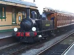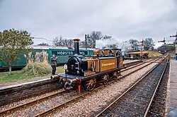 | British Rail | 0-6-0DM | 09 | D4106 (previously 09018). Bought by a consortium of locomotive department volunteers, D4106 is on loan to the railway on an "at-cost" basis where the railway hires it until the members receive their funds back. The higher gearing of an 09 compared to an 08 allows it to be used in emergencies on passenger services at 25 mph (40 km/h), a role it undertook for the first time during summer 2013. | |
