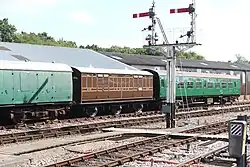 | LBSCR | 676 | Stroudley 4-wheel Brake Third | Built in 1875. Stored awaiting restoration. Moved into the OP4 carriage shed at Horsted Keynes in 2018.[29][30] Now on underframe of PMVY 1728.[31] |