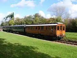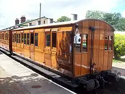 Four carriages built in 1898 and 1900 for use out of Baker Street station in London. Initially steam hauled, later used in electric trains, reverting to steam haulage on the Chesham branch in 1940. Purchased by the Bluebell Railway in 1961, and used until withdrawn in the late 1960s in need of major attention. Now returned to service and are unique as a close-coupled set of vintage carriages. The restoration team were the recipient of the Heritage Railways Association's award as overall winner of their 2006/7 carriage competition. The carriages have seen regular use on London Underground in recent years as part of steam operations on the Metropolitan line, and possess TOPS identities for movements over the Network Rail network to and from London.