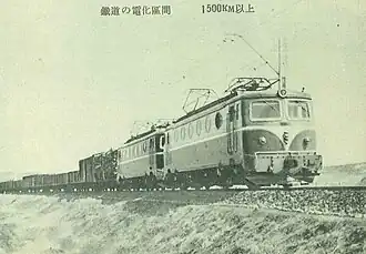 After the partition, the Allied General Headquarters (GHQ) in Tokyo ordered the delivery of a further ten electric locomotives to Korea as war reparations from Japan.[11] Seven were eventually delivered, all to the South, based on the expectation that reunification would come quickly, and that the implementation of Sentetsu's electrification plans would continue. However, after the outbreak of the Korean War, during the occupation of much of the Korean Peninsula by the Korean People's Army seven of the eight electric locomotives were captured and taken to the north - the one unit that had been in Seoul for repairs at the time of Japan's surrender in the Pacific war, along with six of the seven units that had been delivered to the South from Japan after the partition. Thus, of the 16 electric locomotives that had been delivered from Japan, 15 ended up in the North after the end of the Korean War.[9]