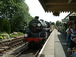 | 41312 | LMS Class 2 2-6-2T | Built in May 1952 at Crewe Railway Works and spent its entire working life on the Southern Region of British Railways. It was withdrawn from service and moved to Woodhams scrapyard in South Wales where it stayed until 1974. It moved to the Watercress line in 1995 and returned to steam in 1999.[6] Its most recent overhaul was completed came back since 2016.[7] | BR Black, Late Crest |