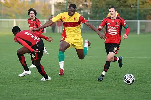 Danzé arrived at the Rennes Academy in 2001 after they invited to a trial and impressed the side.[4][3] Although he played as a defender, Danzé began to play in the midfield position. At one point, Danzé was the captain for the reserve side.[7] He initially was a regular fixture for the Rennes reserves playing in the CFA team, but was later plagued with injuries.[8][5] Despite this, Danzé signed his first professional contract in the summer of 2006.[9]