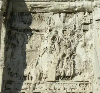 Some of these scenes are represented in the first south-east panel of the triumphal arch located near the Curia Julia in the Roman Forum. At the end of the war operations he reunited the province of Mesopotamia (which included only Osroene and Adiabene) by placing two of the three new legions just created (the Legio I and the III Parthica) as garrison there, under the leadership of a prefect of equestrian rank. For these successes he assumed the titles of Adiabenicus and Arabicus[17][18] in 195 AD.[19]