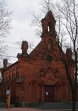 The history of the comparatively new Roman Catholic parish in town Sumy is dramatic. It faced a number of ordeals while Ukraine was part of the Soviet Union. At the end of the 19th century Roman Catholics in Sumy had decided to build their own church, which was approved in 1900 with the aid of famous patron Maecenas Paul Kharitonenko (1853–1914), at whose sugar refineries, the largest in Europe and Russia,[5] worked many specialists from Europe, chiefly Roman Catholics from Poland and the Czech Republic.[6] The Church of the Annunciation of the Blessed Virgin Mary, in Gothic style, was built in 1901. "...All attempts to find information about the building process as well as its interior have been unsuccessful"[7] to date. Consecrated in 1911 by Jan Tsepliak, bishop of Mogilev, the Church of the Annunciation of the Blessed Virgin Mary was closed by authorities two decades later, and was not used as intended. After World War II, a museum, then a gym, were located there for 50 years. Only after the fall of the USSR was the church again used as a Roman Catholic church and in spring 1998 it was solemnly reconsecrated.