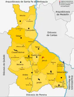 - 3 July 1941: Restored as Diocese of Jericó, regaining its territory from the above Diocese of Antioquía–Jericó.